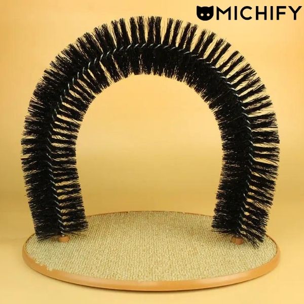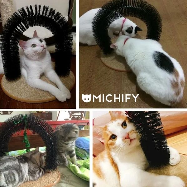 - Gato auto padrino y masajeador todo en uno, cepillo de novio de gato, almohadilla rascadora y Juguete de juego, sus encantadores gatos y gatitos pueden caminar a través del arco y cepillarse o moler garras, mantente entretenido durante horas.